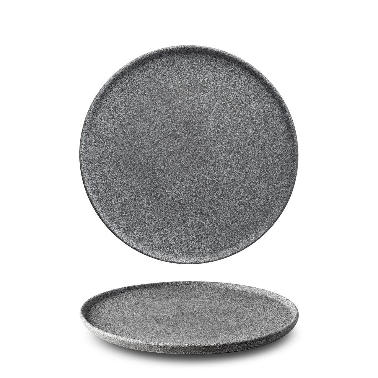 Flacher Granitteller mit 24 cm Durchmesser, matt, dunkler Granitton.