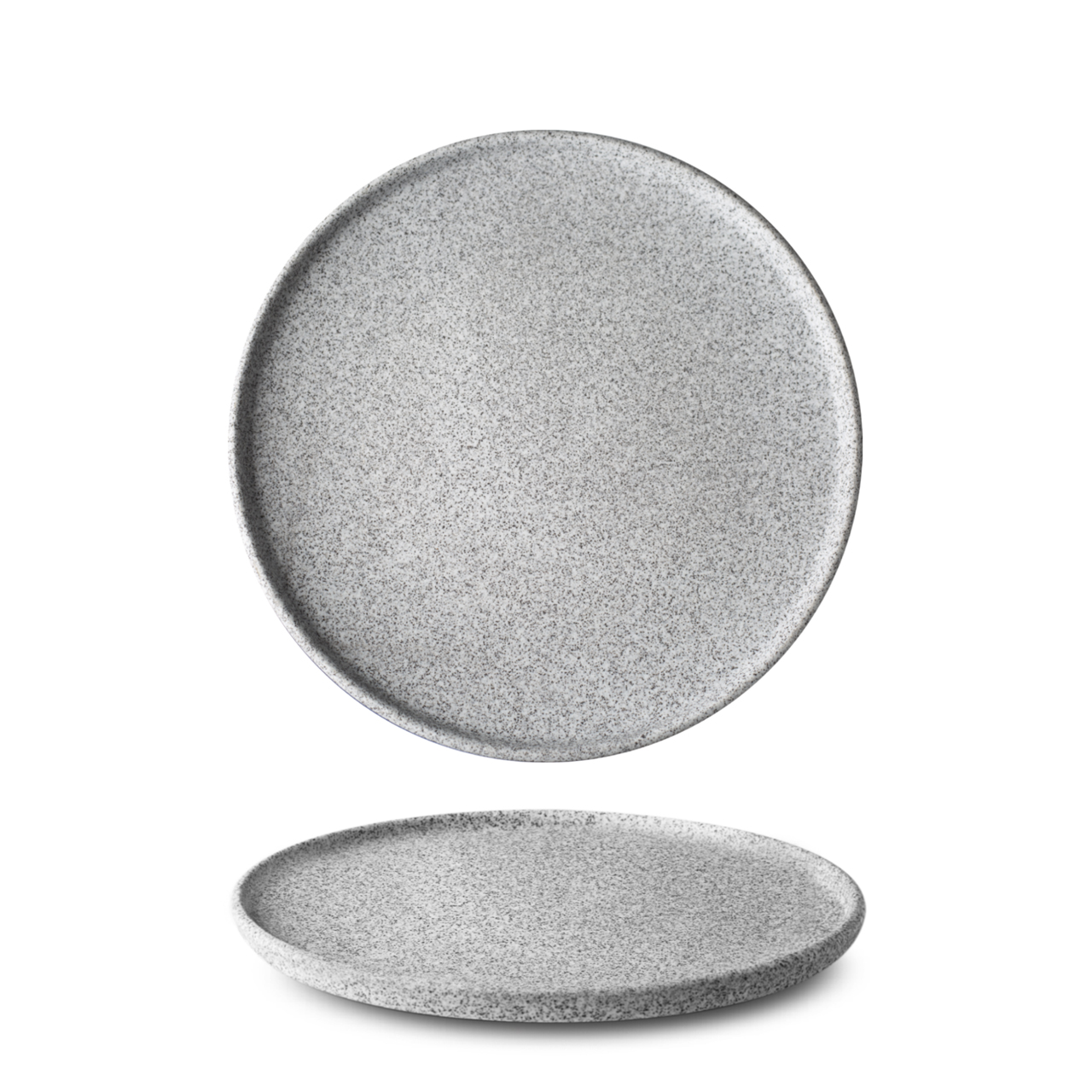 Flacher Granitteller mit 24 cm Durchmesser, matt, heller Granitton.