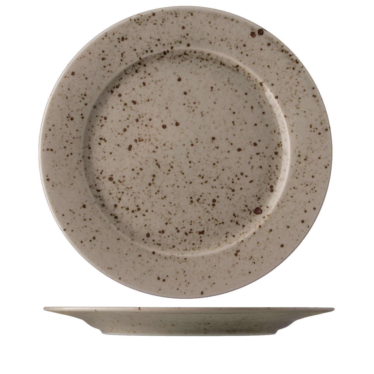 Flacher Teller mit 31 cm Durchmesser und Rand. Originelles Dekor dank einzigartiger Fertigungstechnologie.