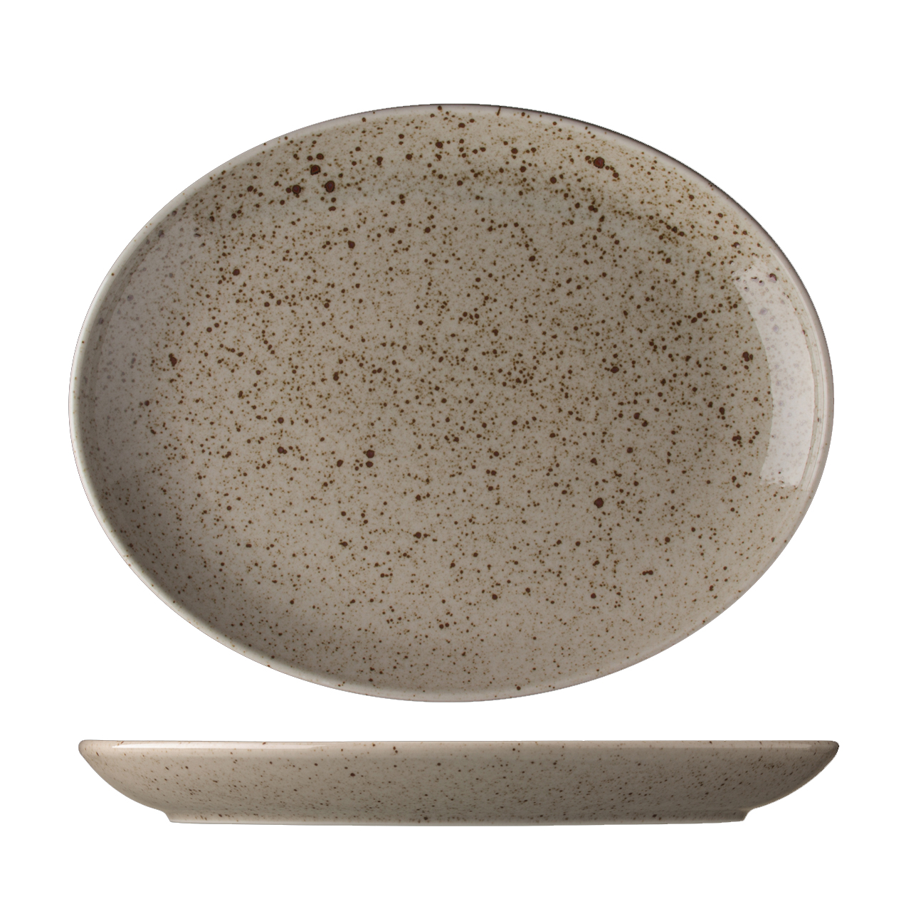 Ovales Tablett mit einem Durchmesser von 32 cm. Originelles Dekor dank einzigartiger Fertigungstechnologie.