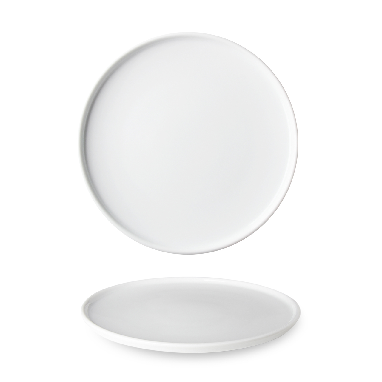 Flacher Teller mit 26 cm Durchmesser und erhöhtem Rand.