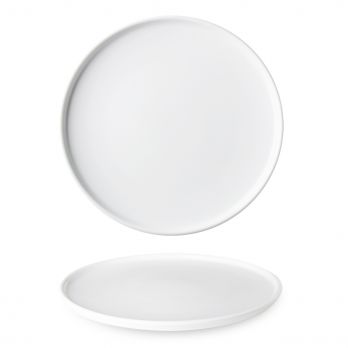 Flacher Teller mit 29 cm Durchmesser und erhöhtem Rand.