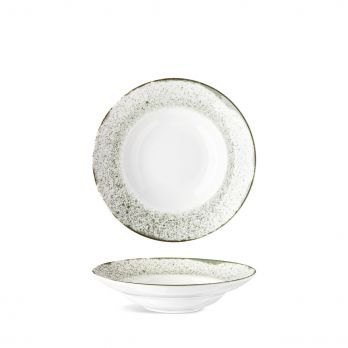 Pastateller mit 26 cm Durchmesser, weiß mit buntem Banner.