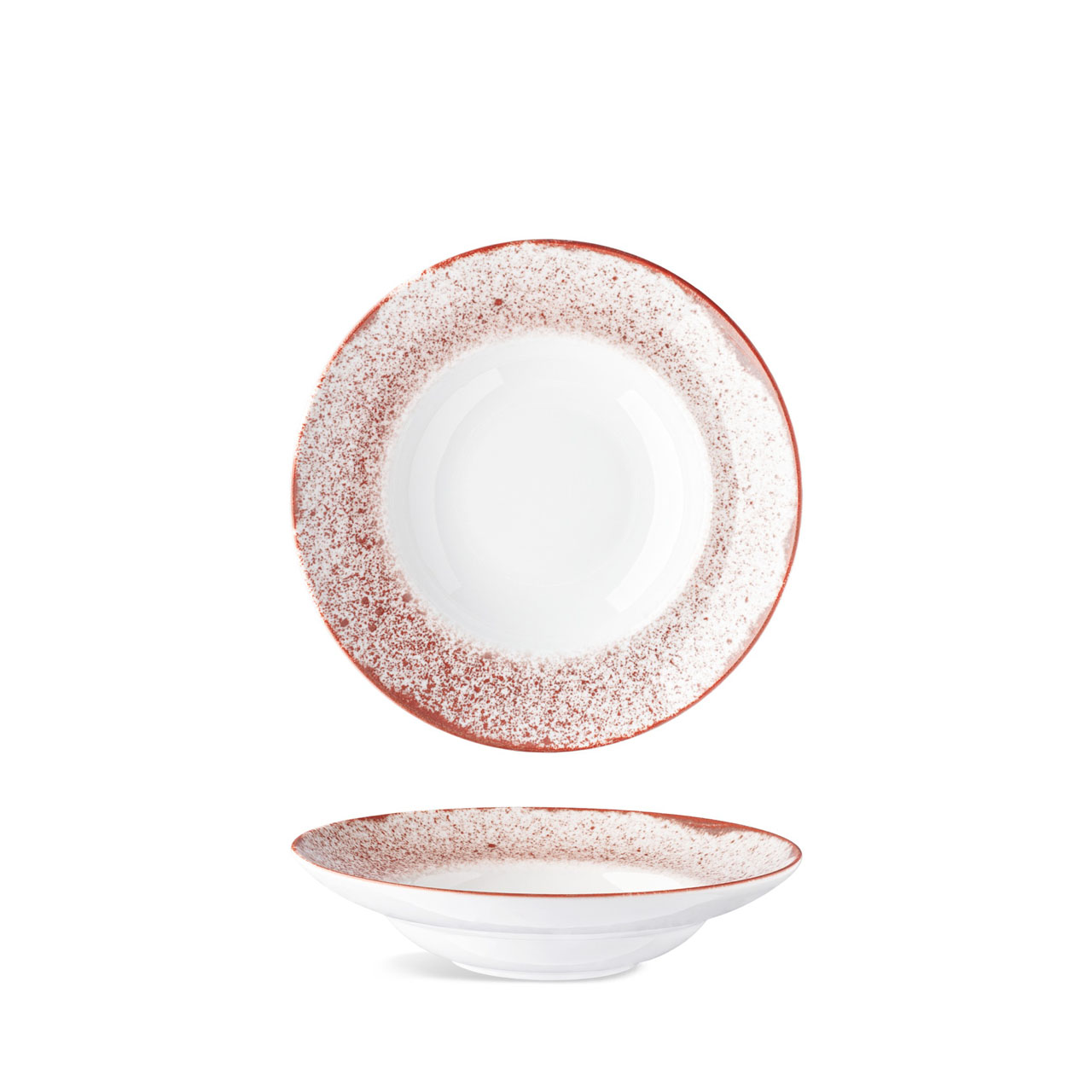 Pastateller mit 26 cm Durchmesser, weiß mit buntem Banner.
