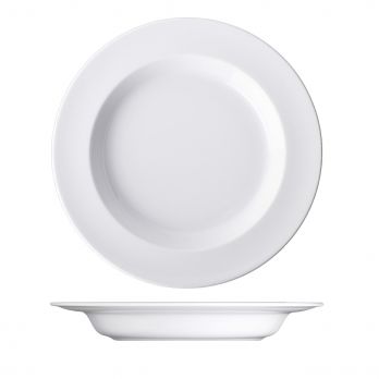 Halbtiefer Teller mit einem Durchmesser von 26 cm. Dank spezieller Details, wie z. B. Arretierungen zum einfachen Aufnehmen von Speisen, ist das ACTIVE-Porzellan ideal für Menschen mit motorischen Einschränkungen und Senioren.