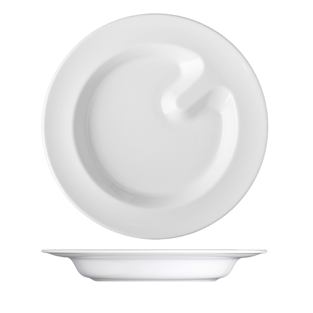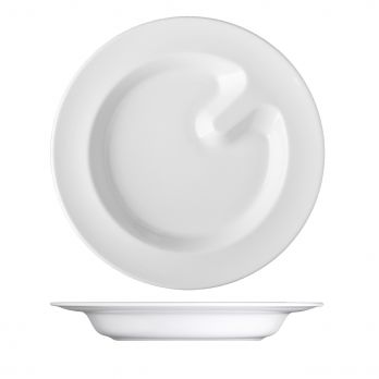 Spezieller, halbtiefer Teller mit einem Durchmesser von 26 cm. Dank besonderer Details, wie z. B. Anschlägen zum einfachen Aufnehmen von Speisen, ist das ACTIVE-Porzellan ideal für Menschen mit motorischen Einschränkungen und Senioren.