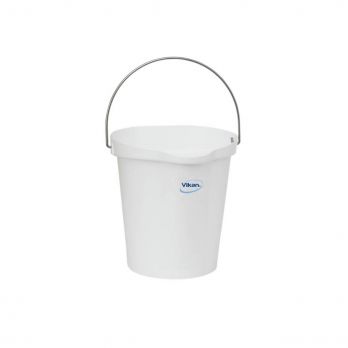 Ein hochwertiger Vikan-Eimer mit durchdachtem Design, einem ergonomischen Griff an der Unterseite und einem Edelstahlgriff für einfa che Handhabung. Das Produkt besteht aus Polypropylen. Im Inneren des Eimers befindet sich eine gut ablesbare Messskala zumeinfachen und genauen Abmessen von festen und flüssigen Stoffen. Das Produkt erfüllt die Anforderungen für den Kontakt mit Lebensmitteln.
