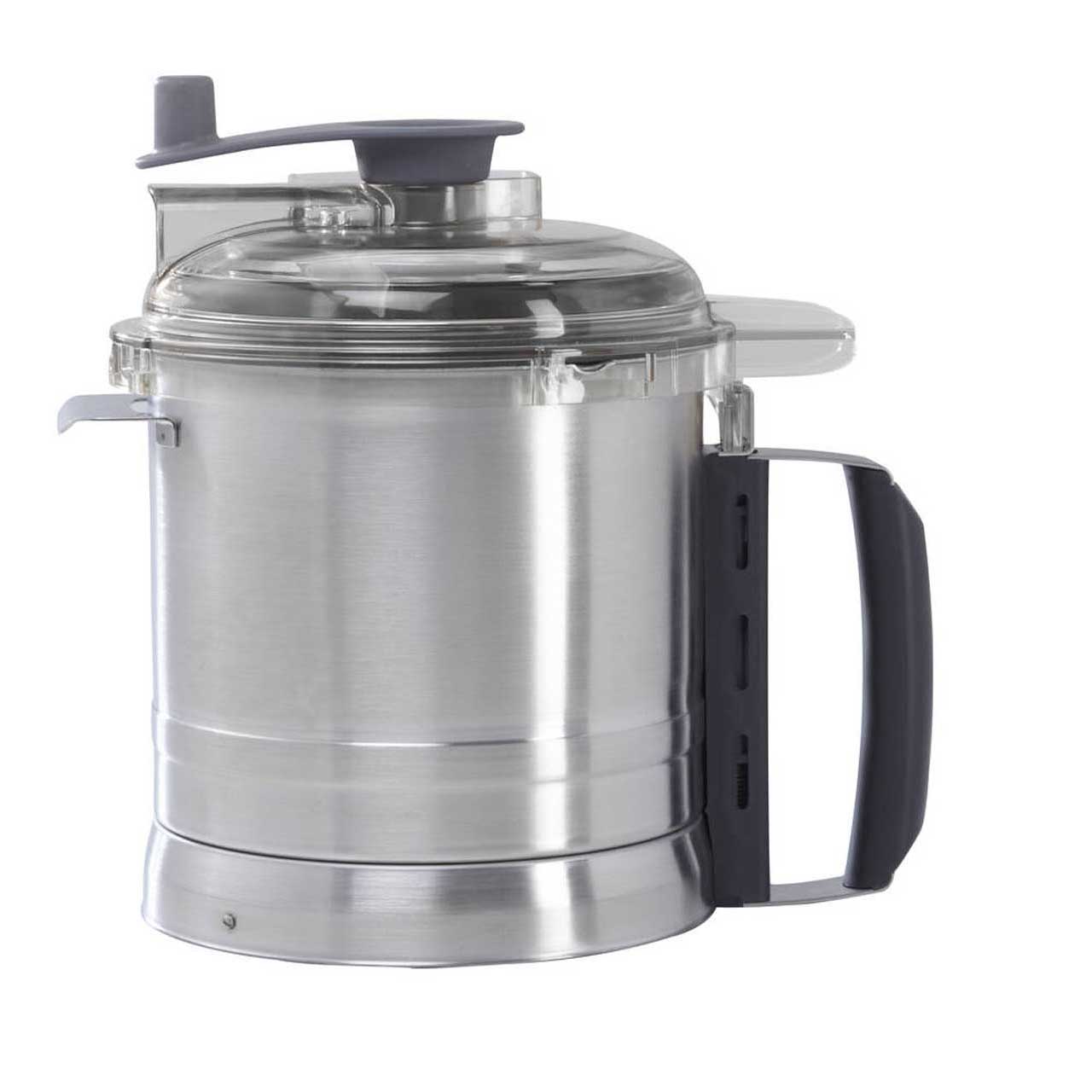 ✔ Dichtes Deckel-Design verhindert Spritzer, integriertes Schaber-System für homogene Verarbeitung.