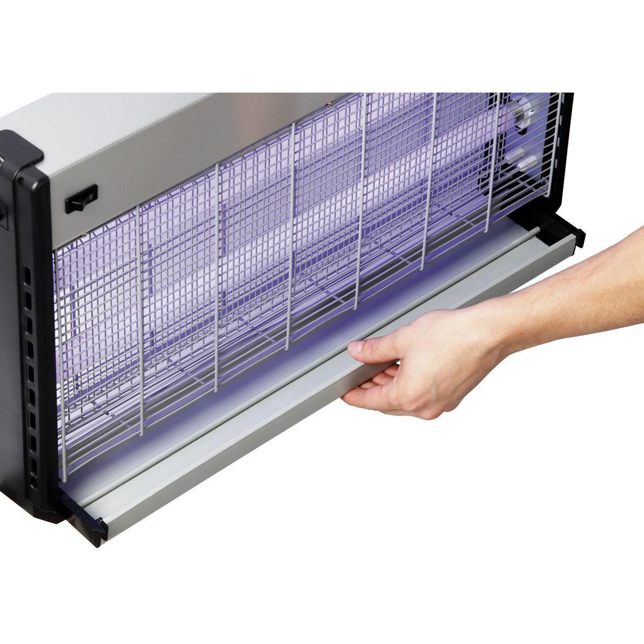 Die Insektenfalle dient der elektrischen Insektenbekämpfung ohne Chemikalien. Die Insekten fallen in eine leicht entnehmbare Öffnung. Das Gehäuse besteht aus robustem Kunststoff. Wirkungsradius: 12 m. Netzspannung: 2500 V. Leistungsaufnahme: 45 W/230 V/50–60 Hz. Lichtquelle: 2 x 20 W. Abmessungen: 645 (B) x 100 (T) x 365 (H) mm. Gewicht: 3,7 kg.