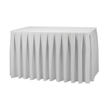 Die Sockelleiste Excaliber verschönert Ihren Banketttisch. Es besteht aus 100 % Polyester und muss nicht gebügelt werden. Kann in der Waschmaschine bei einer Temperatur von bis zu 40°C gewaschen werden. Abmessungen 410 x 73 cm. Die Befestigung erfolgt mit selbstklebendem Klebeband mit Klettverschluss, das nicht im Lieferumfang enthalten ist.