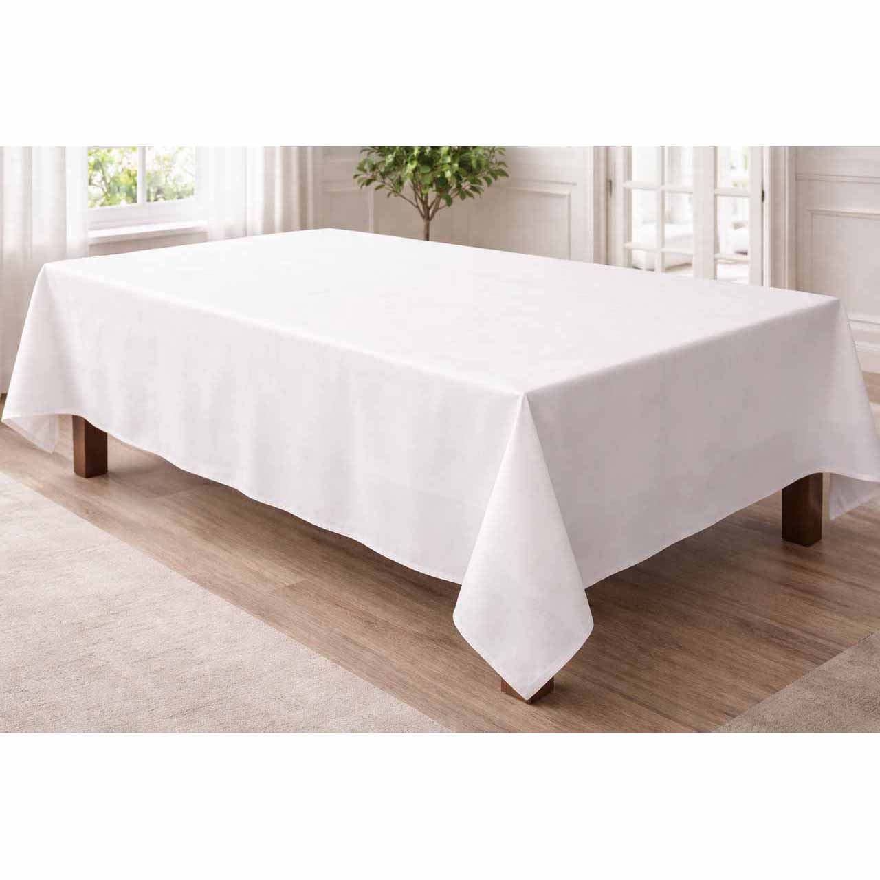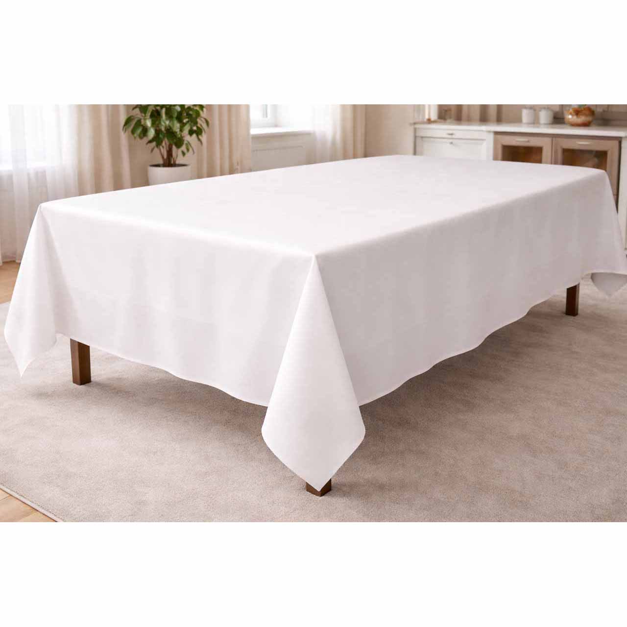 Tischdecke 140 x 140 cm weiß mit Rand, 100% Baumwolle, Gewicht 205 g/m2, Einlauf bis 5%